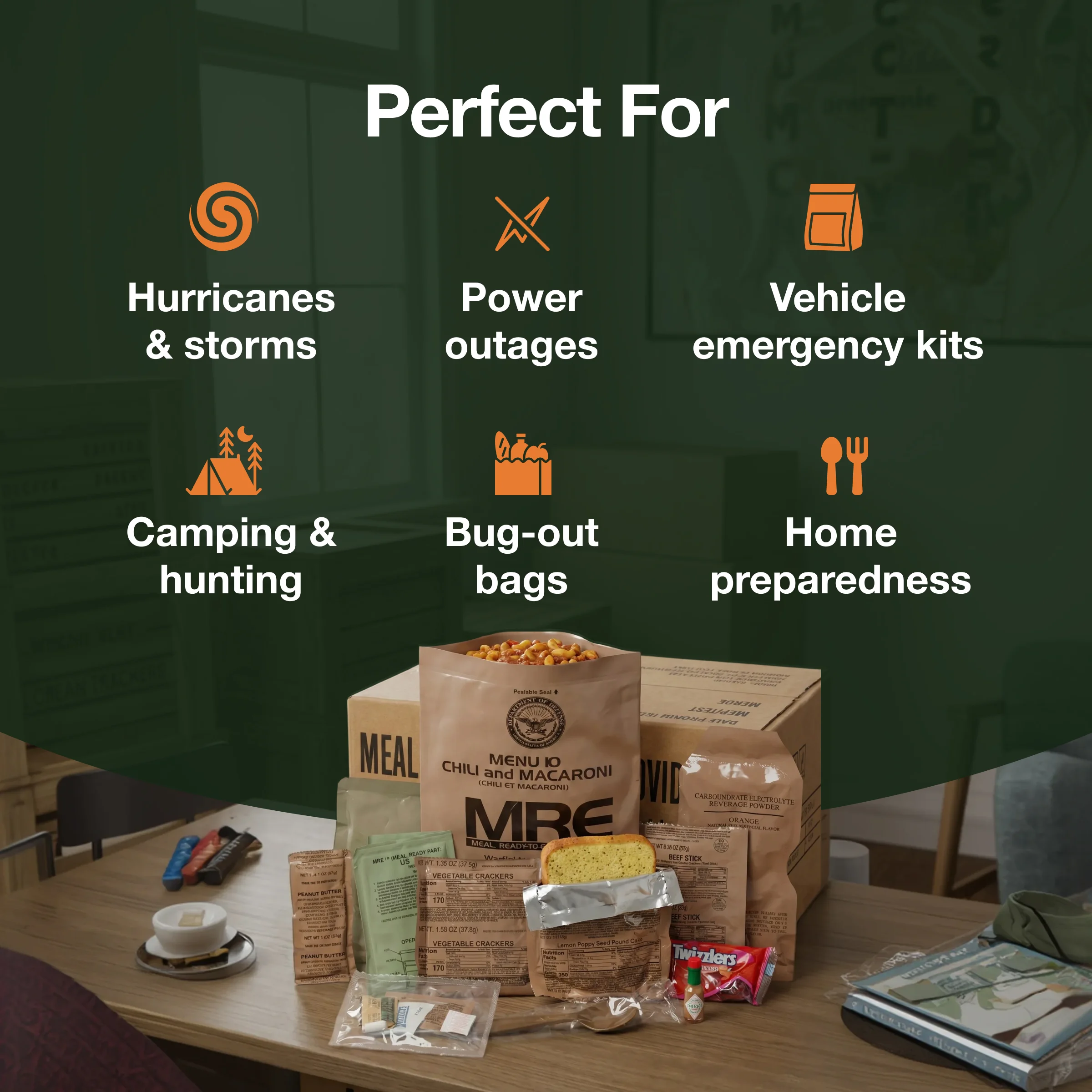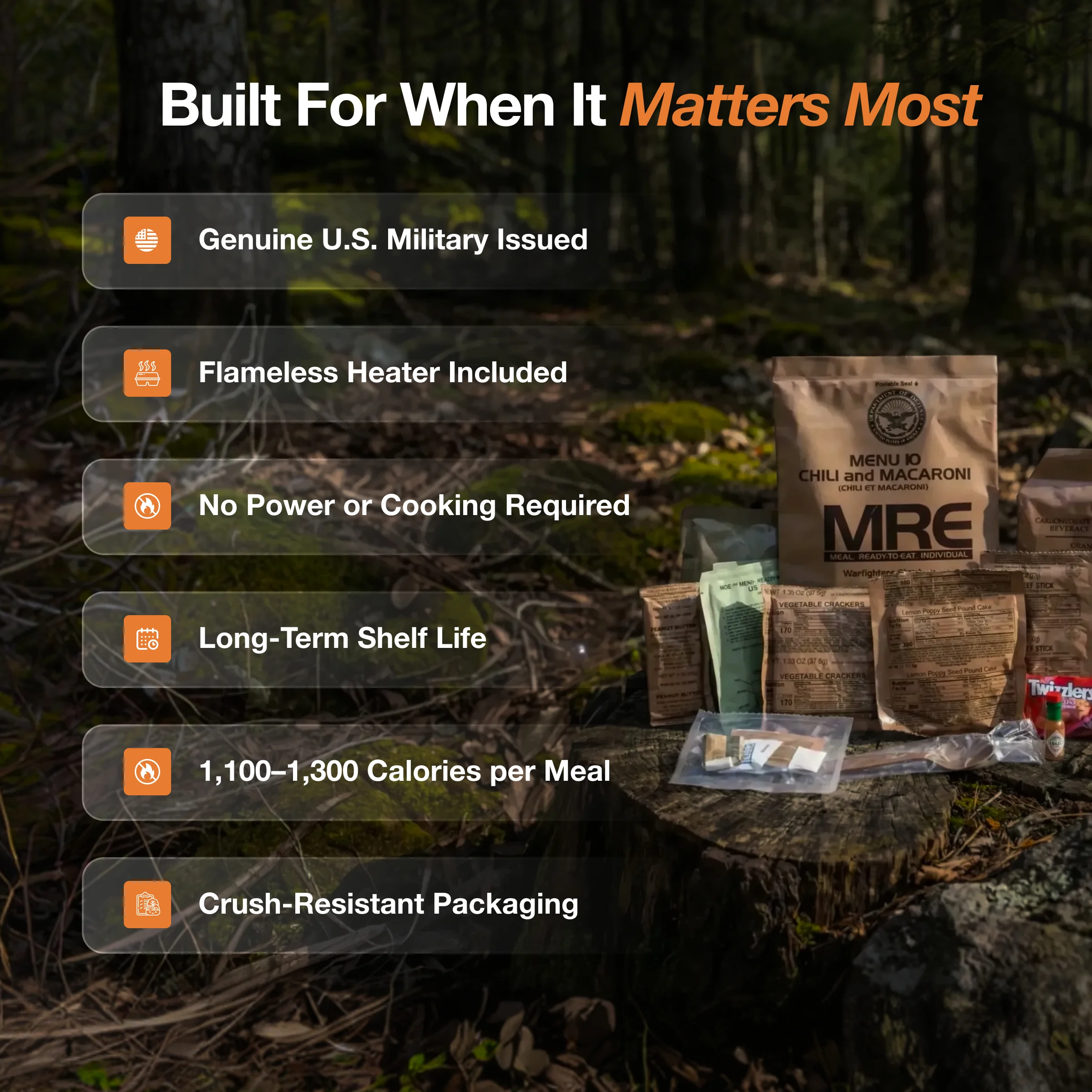 Yes — MRE meals are one of the best emergency foods because they: